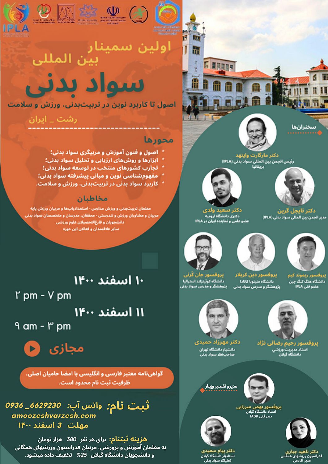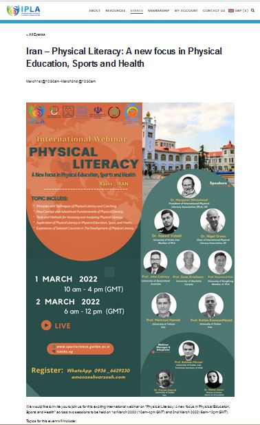 توسط مرکز قطب علمی علوم ورزشی و تندرستی (ICESHS ug) و دانشکده تربیت بدنی دانشگاه گیلان، انجمن بین‌المللی سواد بدنی (IPLA)، معاونت تربیت ­بدنی و سلامت وزارت آموزش و پرورش و فدراسیون ورزش ­های همگانی ایران و با حمایت سامانه آموزش ورزش و دانشکده علوم ورزشی دانشگاه ارومیه برگزاری می شود.